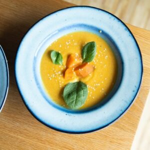 Nalákali sme vás? To je dobré. Poďme sa spoločne pozrieť na to, ako pripraviť batátovú polievku s mrkvou, karí a zázvorom, ktorá je zahustená kešu smotanou.