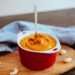 Keď ste kešu orechy dostatočne rozmiešali s vodou, na rad prichádza dochucovanie. Podľa chuti použite kurkumu, sušené droždie, rascu, čili, soľ a cesnak. Sľubujeme, že výsledok bude stáť za to v akejkoľvek kombinácii!