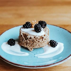 My sme použili formu na creme brulee, aby mugcake nebol príliš vysoký a ľahko sa vyklopil. Môžete však použiť aj keramickú formu na muffiny. Vložte mugcake do mikrovlnnej rúry a nechajte ho piecť na plnom výkone 2 minúty alebo dlhšie podľa potreby.