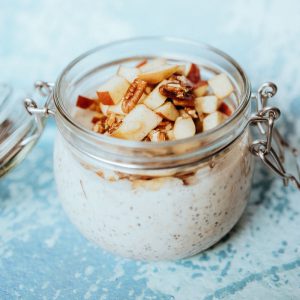 Ovsená kaša cez noc je jednoduchá a existuje nekonečne veľa variácií. Základom sú chia semienka, jogurt a mlieko, z ktorých sa cez noc vytvorí základ ovsenej kaše.