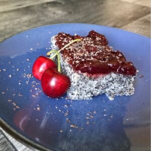 V mise zmiešajte všetky suché ingrediencie – múku, kypriaci prášok, vanilkový cukor, xylitol a mletý mak. Z vaječných bielok vyšľahajte sneh a pridajte k sypkej zmesi kokosový olej, mlieko, žĺtok a citrónovú kôru. Mixujte do hladka. Nakoniec opatrne vmiešajte vyšľahaný sneh a marmeládu – áno, čítate správne. My máme najradšej ríbezľovú alebo čerešňovú, ktoré sú pekne kyselkavé. Cesto potom nalejte na plech a pečte pri teplote 175 °C približne 30 minút.