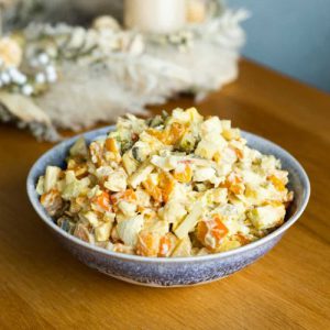 Už roky pripravujeme na Vianoce dva šaláty. Jeden tradičný a druhý nízkosacharidový z tekvice. Postupne však začína prevládať tekvicový šalát, pretože je obľúbený aj u zástancov tradičného zemiakového šalátu. Diétny „zemiakový“ šalát je plný chutných živín a nie je ani ťažký, pretože sa nepripravuje s majonézou. Namiesto nej používame zálievku z kešu orechov, ktorá sa nazýva kešunéza.